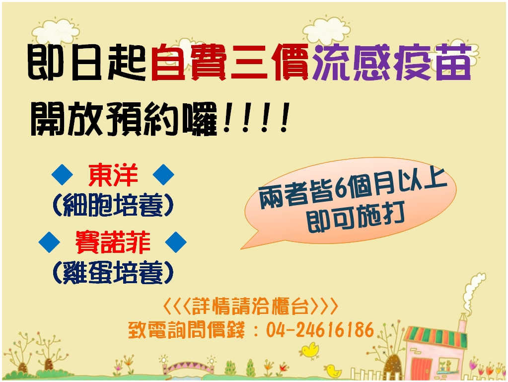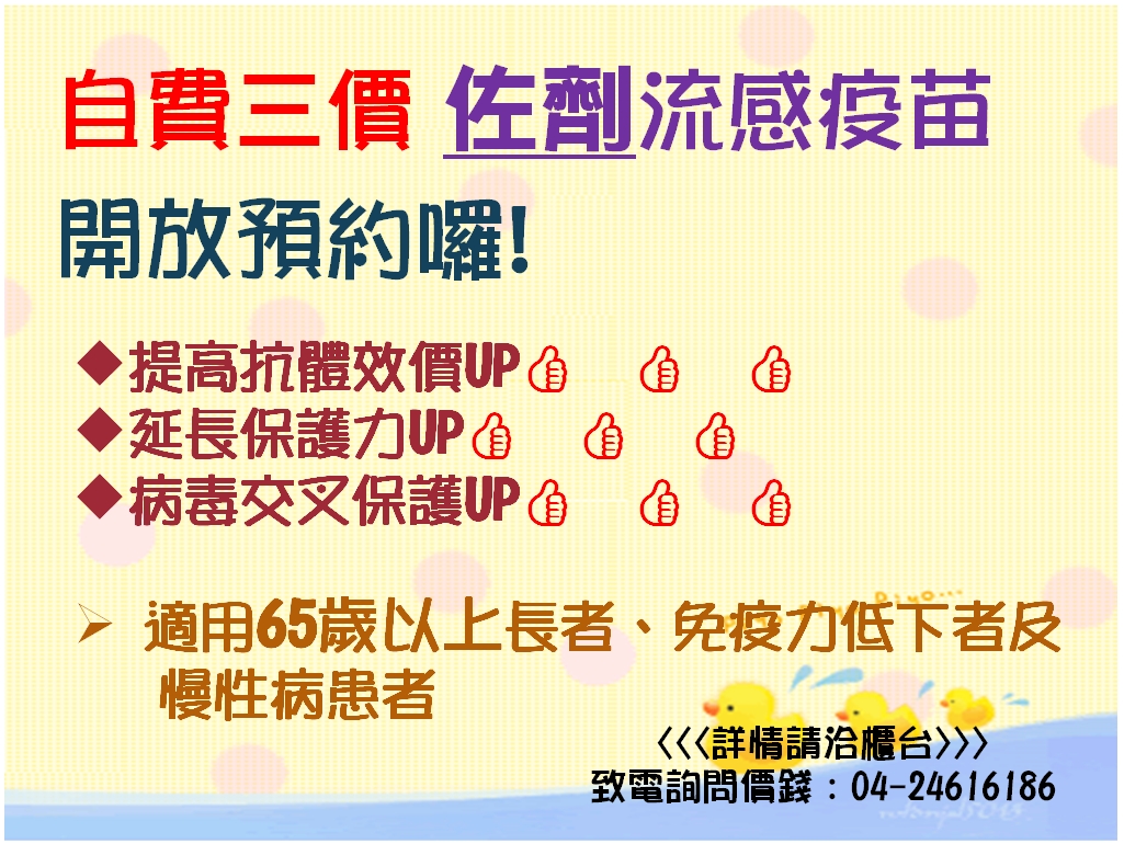 自費三價佐劑 -雞蛋培養 流感疫苗 (限65歲以上長者)